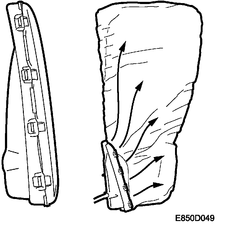 The side airbag contains a gas generator. The airbag has a volume of about 25 liters. The airbag and gas generator are protected by a plastic cover with fracture lines.