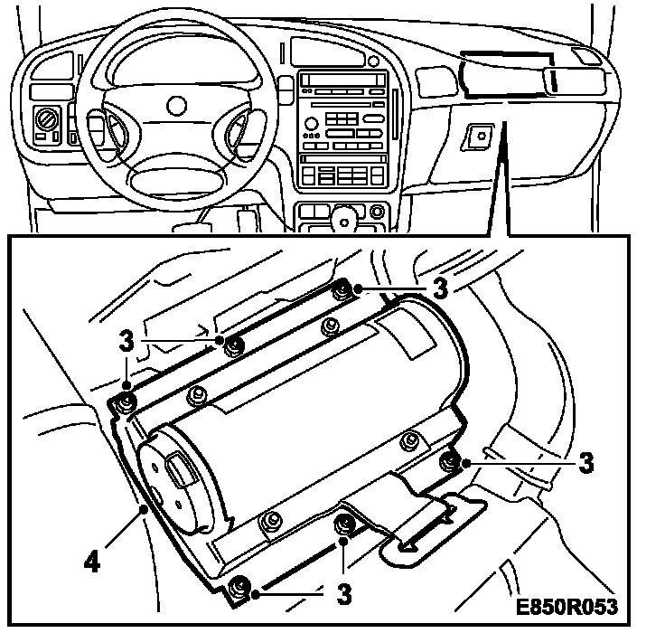 3. Unscrew the passenger airbag from the dashboard, 6 nuts.