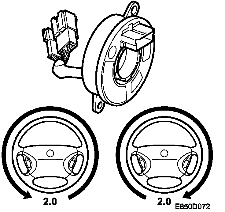 The moving part of the coil spring can be rotated about 4 turns, i.e. 2 turns in either direction from the centre position. If this is exceeded, the spiral tape will break and put the Supplementary Restraint System out of service. This is detected by the control module and the airbag warning lamp will light up.