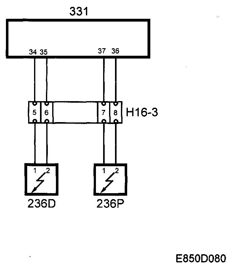 The seat-belt tensioner on the passenger side is connected to pin 37 and pin 36 on the SRS control module. The seat-belt tensioner on the driver's side is connected to pin 35 and pin 34 of the same control module. See SRS Control Module, Airbag (SRS) LHD and Airbag (SRS) RHD.