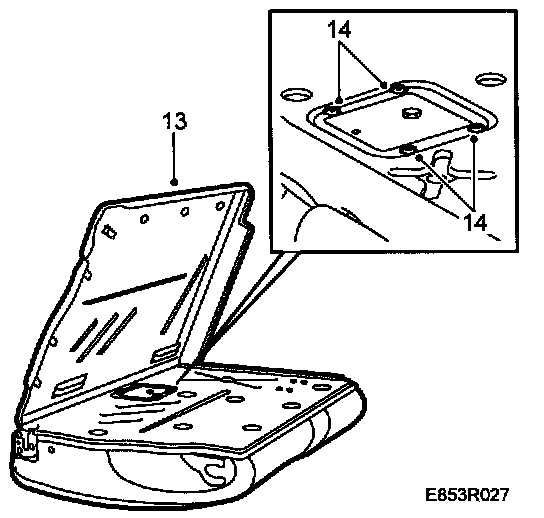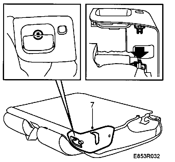 12 Remove the backrest catch's cover, 1 screw in the side and clips (turn 1/4 turn).