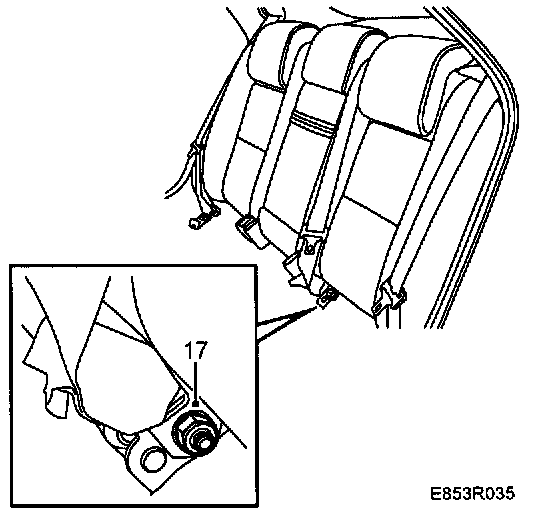 17 Fit the center belt's lower mounting.