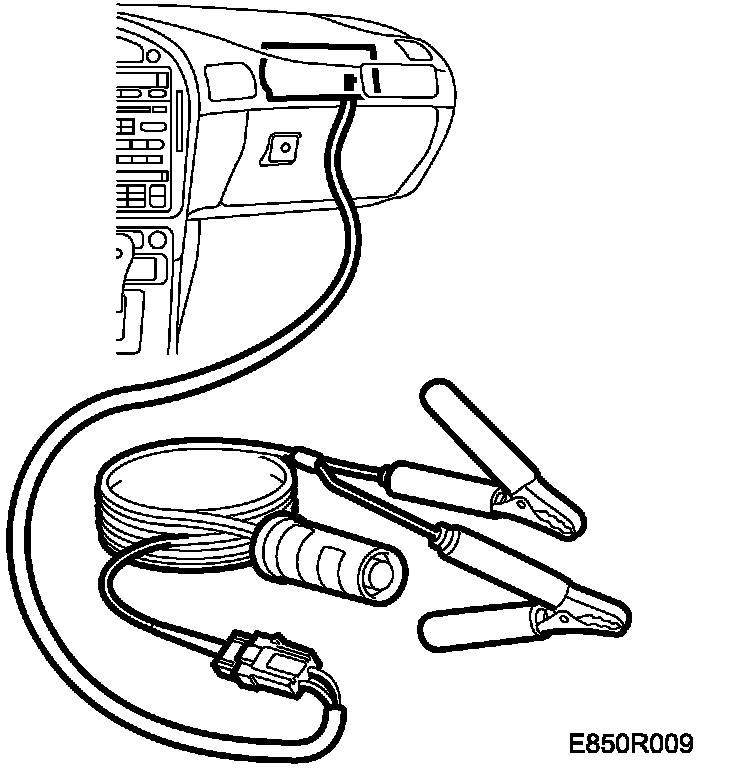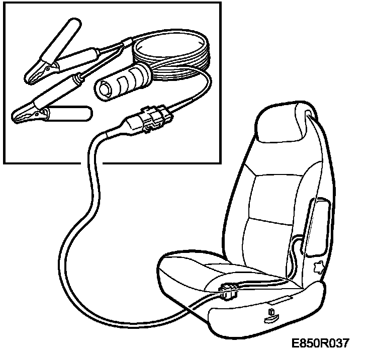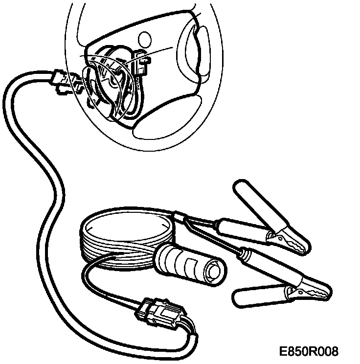 NOTE: The detonating device used consists of a two-conductor cable about 10 meters long with a pushbutton, battery clips and connectors for plugging into wiring harnesses. The wiring harnesses should be changed according to the SRS component that is to be scrapped. The battery to which the detonating device is to be connected must be in good condition.