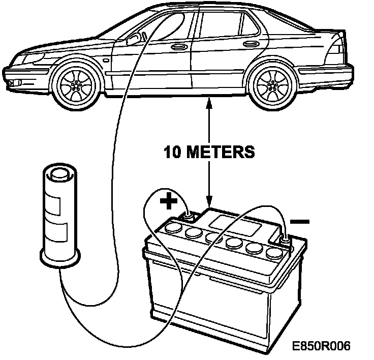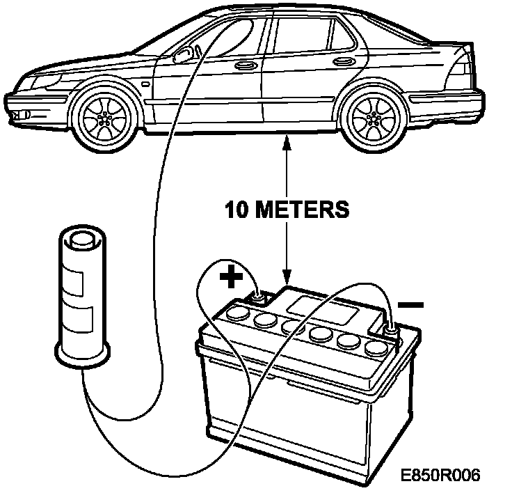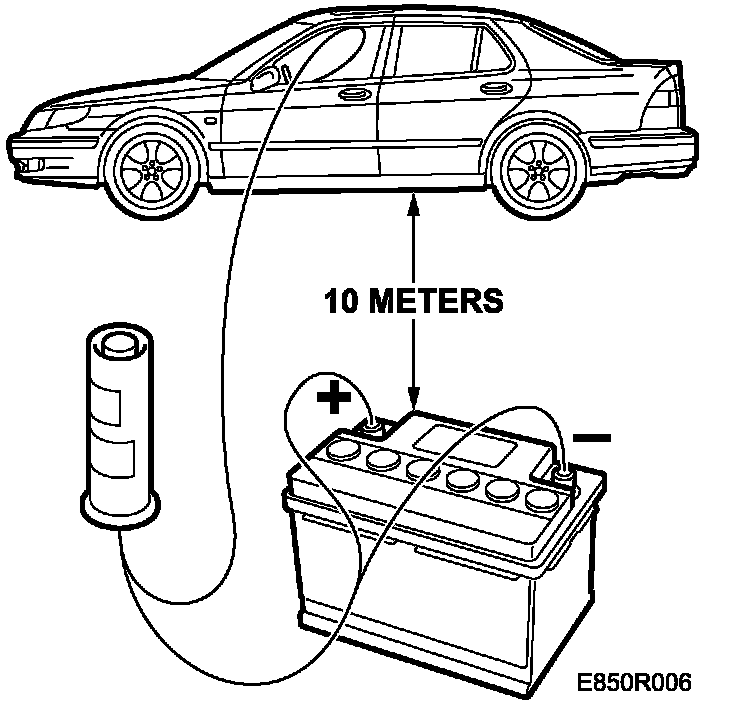 8. Place a battery about ten meters away from the car. Connect the detonating device to the battery.