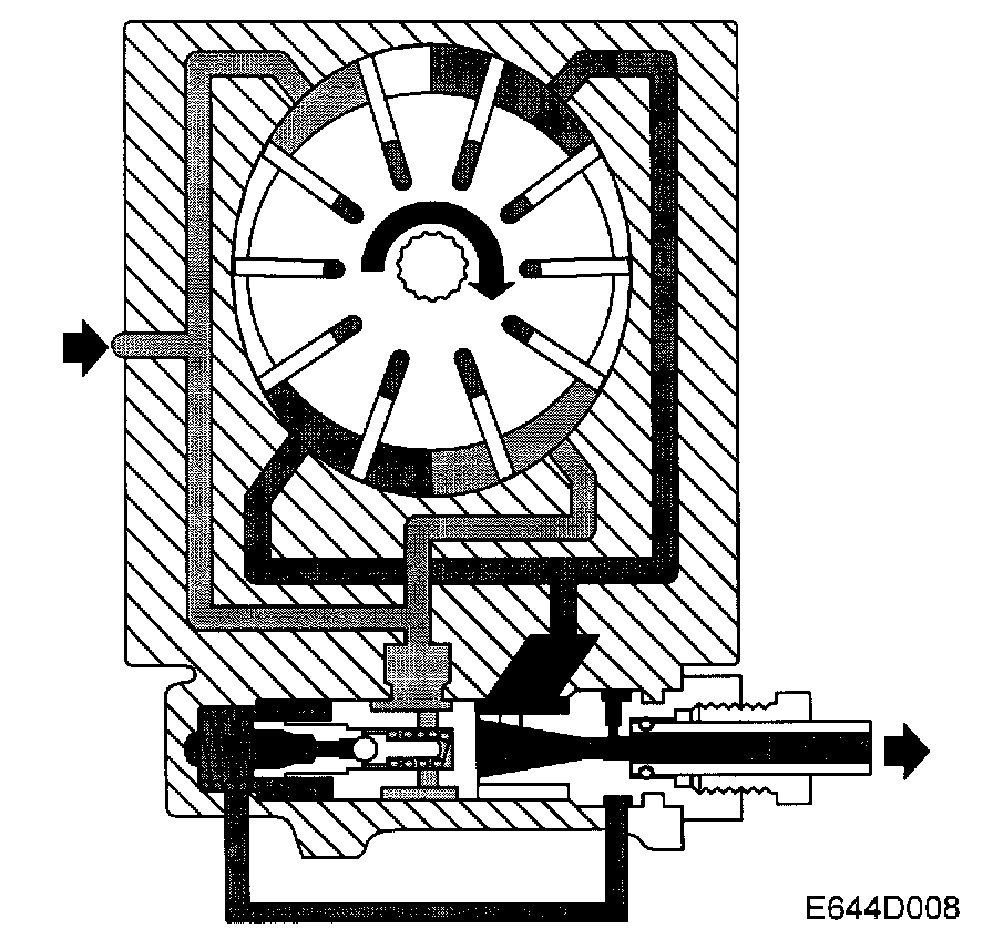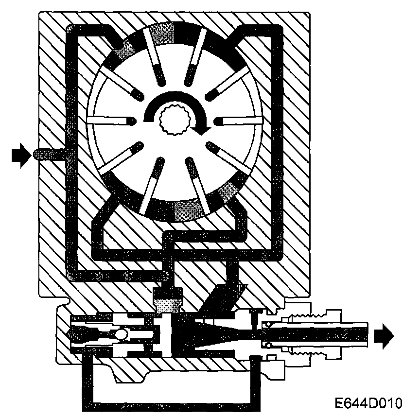 Pump speed in this case is often low. When the steering wheel is turned to full lock the control valve of the steering gear closes. The flow of fluid from the pump will then be zero.