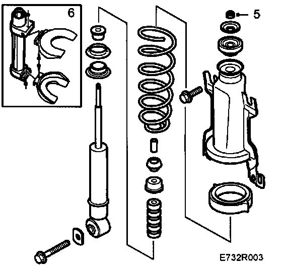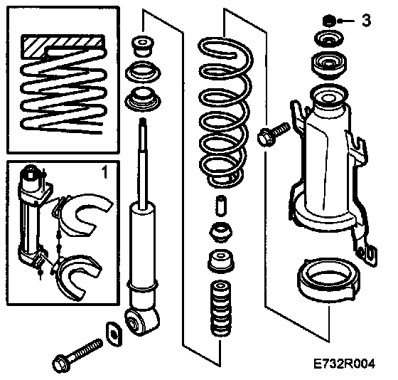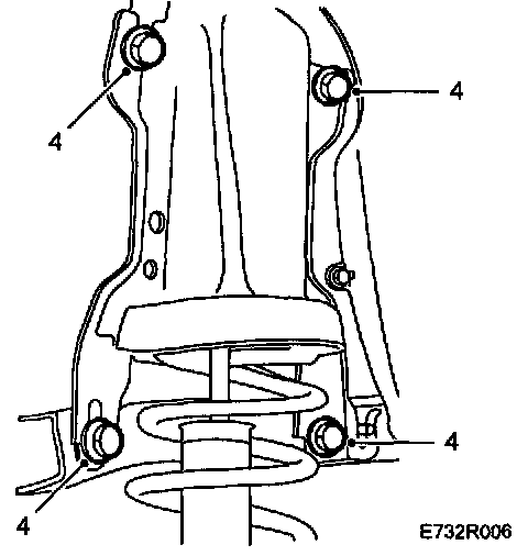 6. Press down the spring bracket to relieve the damper of load and remove the centre nut, washer and rubber bush. It may be necessary to use spring compressor 88 18 791 for this.