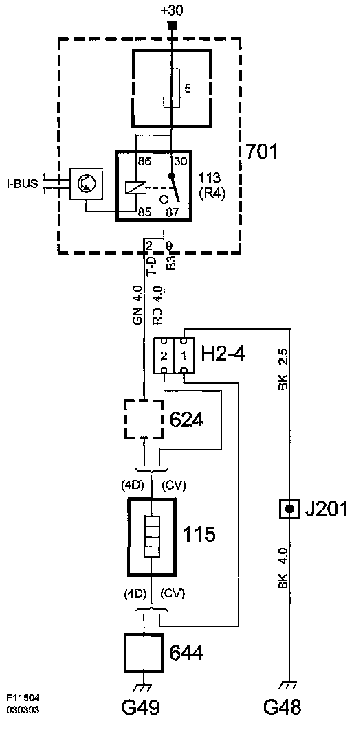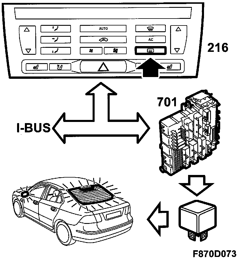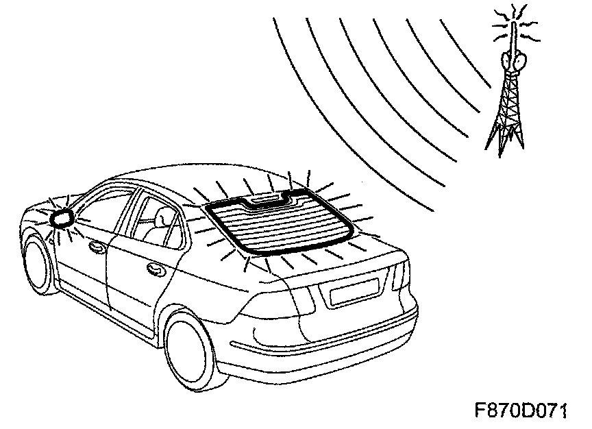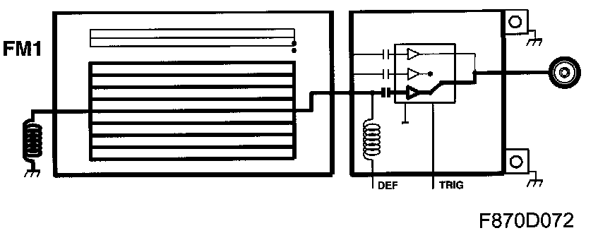 The heating coil receives voltage B+ from REC pin 2 (electrically-heated rear window relay) through the antenna amplifier and is connected to ground through an antenna filter which blocks the antenna ground signal.