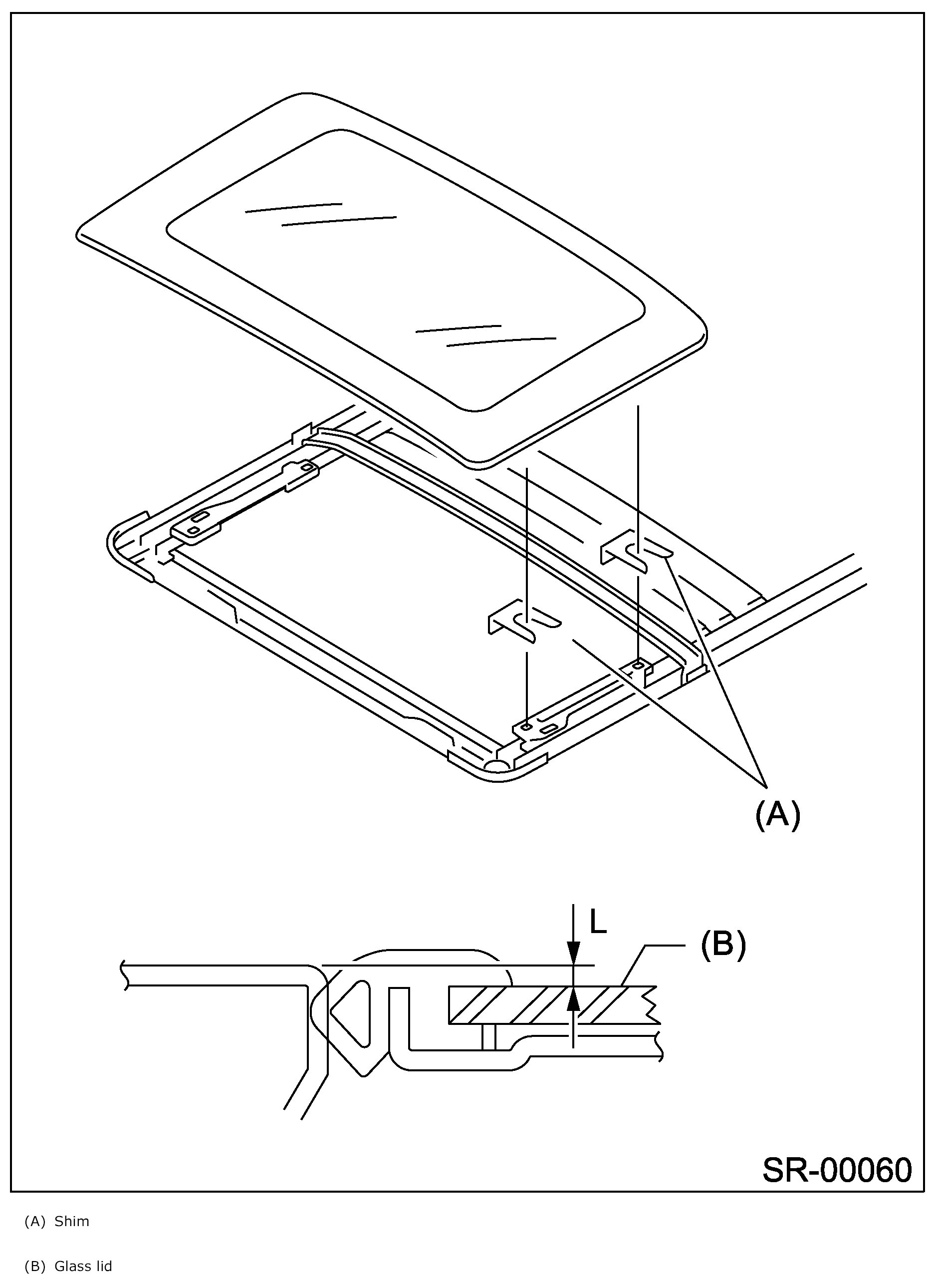 Difference in height between glass lid and roof panel L: 2.0±0.5 mm (0.079±0.020 in)