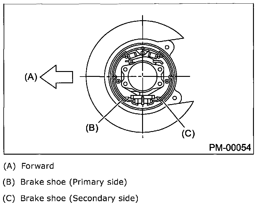 ^ If the deformation or wear of back plate, shoe, etc. is noticeable, replace them.