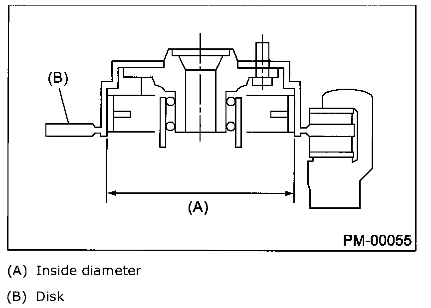 ^ Check the disk rotor for wear, dents or other damage. If the inside surface of disk rotor is streaked, correct the surface with emery cloth (#200 or more). If it is unevenly worn or tapered, correct or replace it.