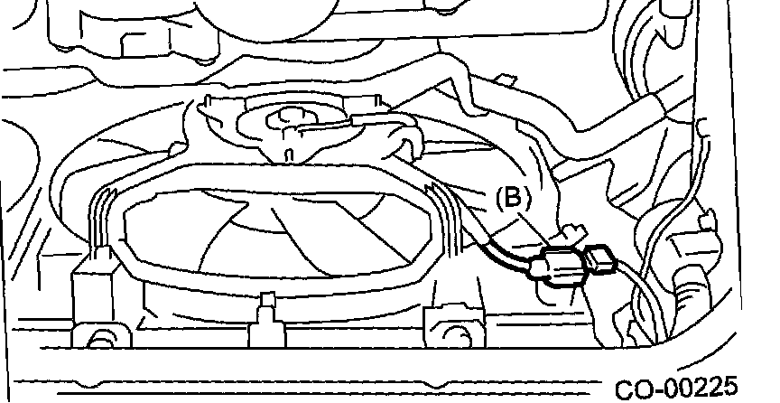 5. Disconnect the connector of sub fan motor (B).