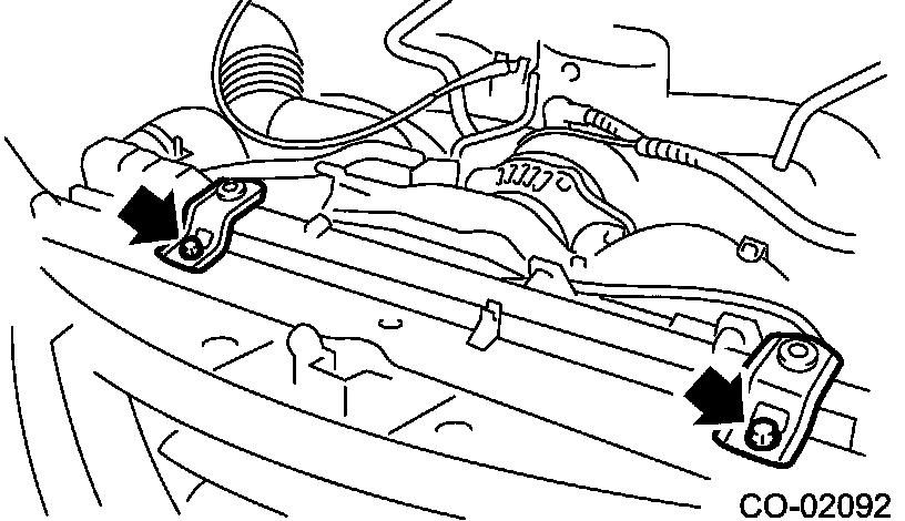 15. Remove the radiator upper brackets.