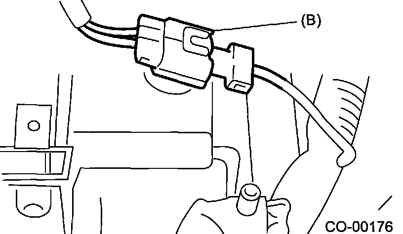 6. Disconnect the connectors of radiator main fan motor (A) and sub fan motor (B).