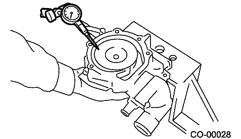 3. Using a dial gauge, measure the impeller runout in thrust direction while rotating the pulley.