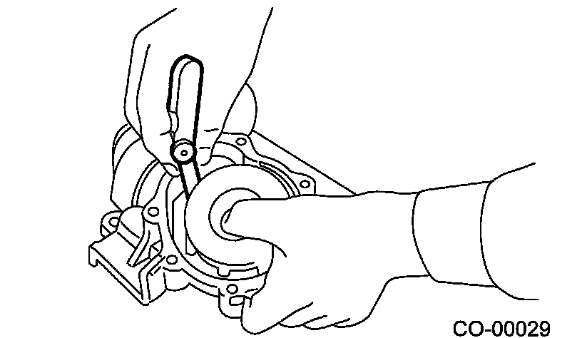 5. After water pump installation, check the pulley shaft for engine coolant leaks. If leaks are noted, replace the water pump assembly.