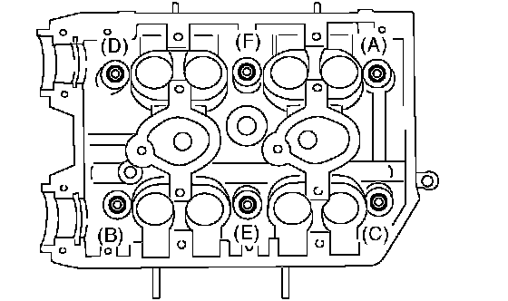 Leave bolts (A) and (D) engaged by three or four threads to prevent the cylinder head from falling.