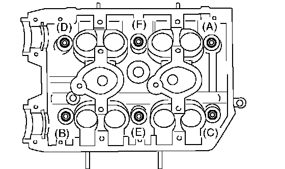 9. Remove the cylinder head bolts in alphabetical sequence shown in the figure.