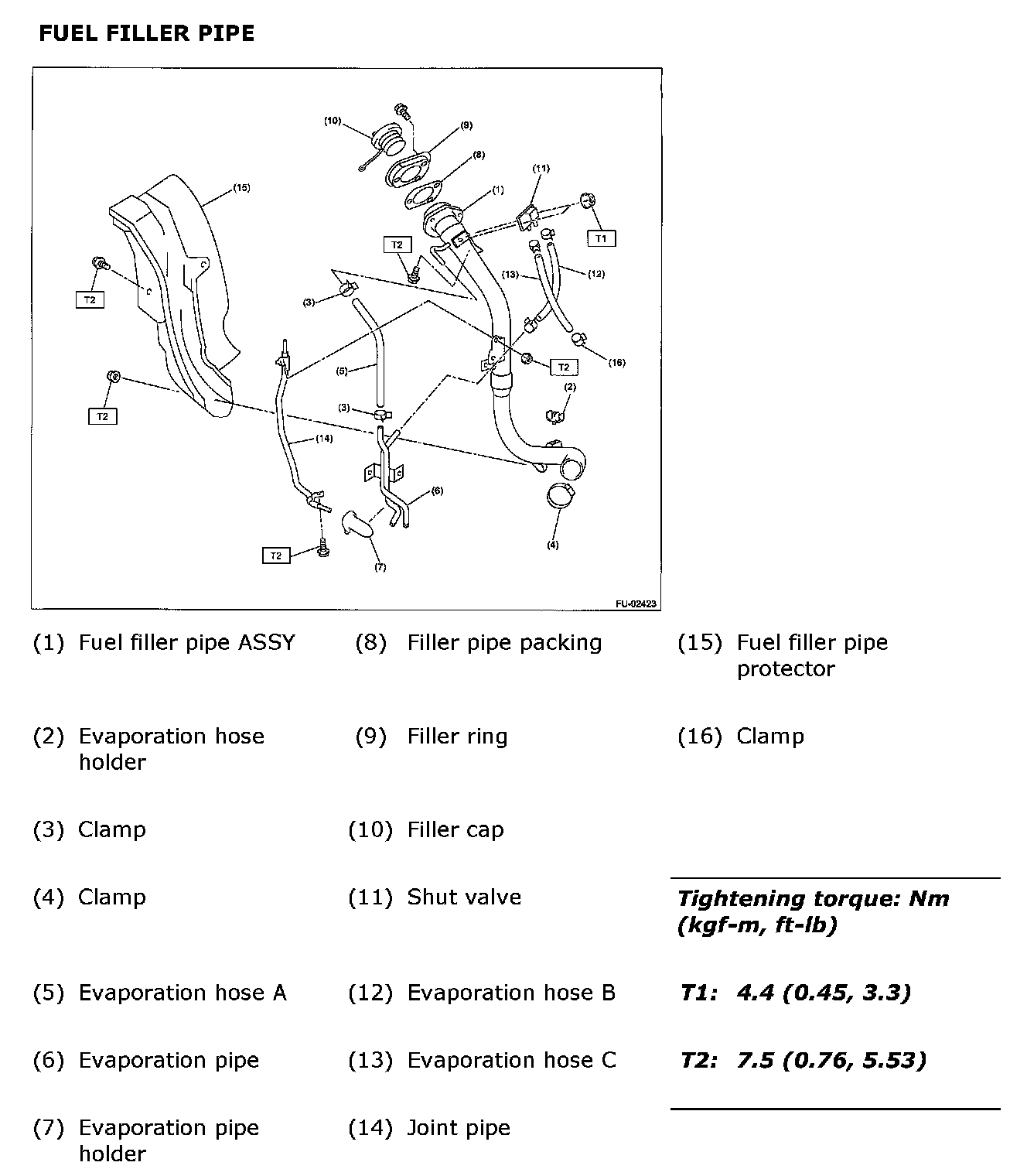 Separate the evaporation hoses from the clip of fuel filler pipe.