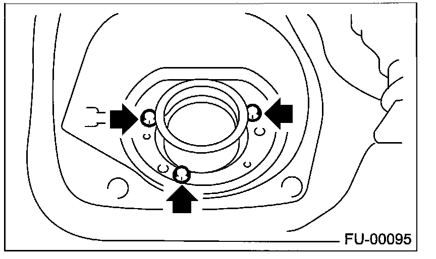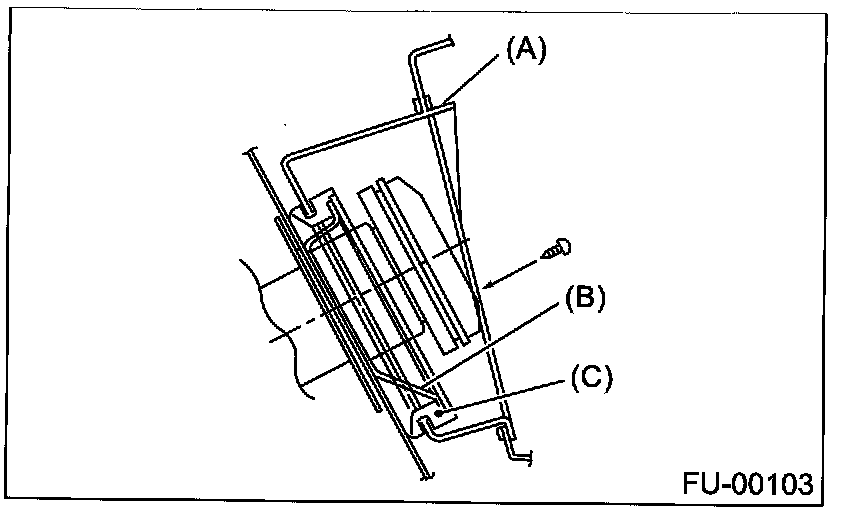 Align the holes in fuel filler pipe neck and set the cup (B), and tighten the screws.