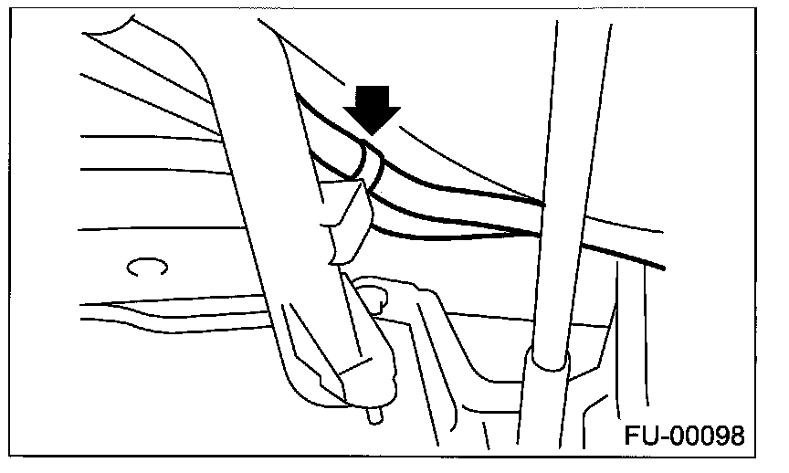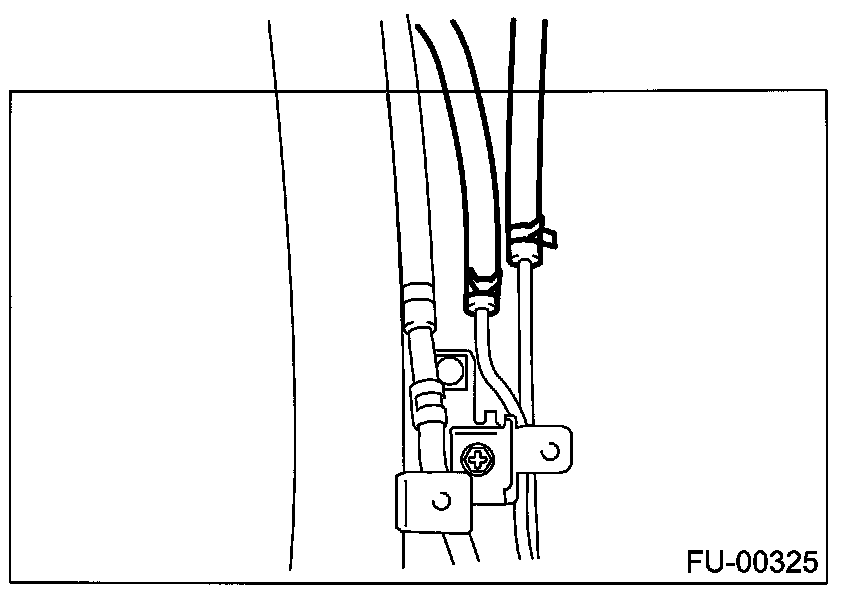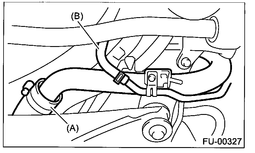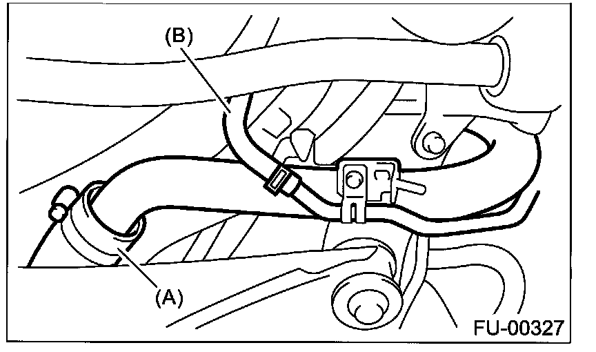 IMPORTANT: Do not allow clips to touch evaporation hose (B) and rear suspension crossmember.