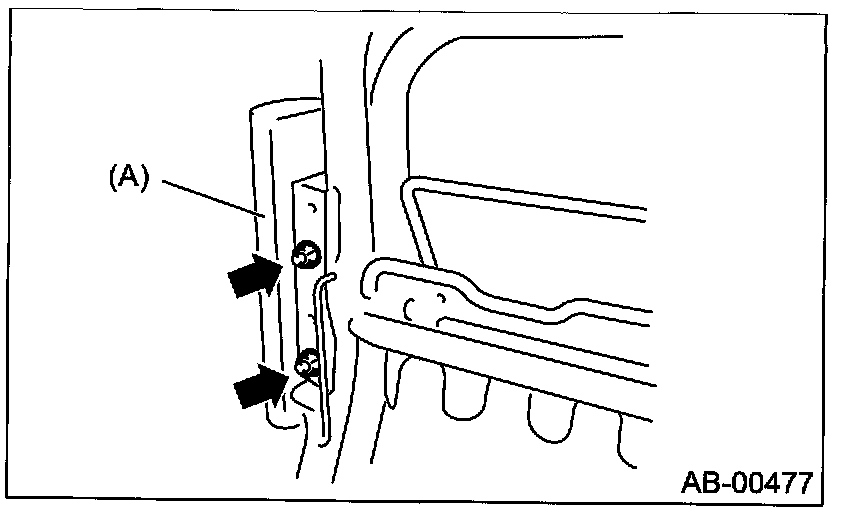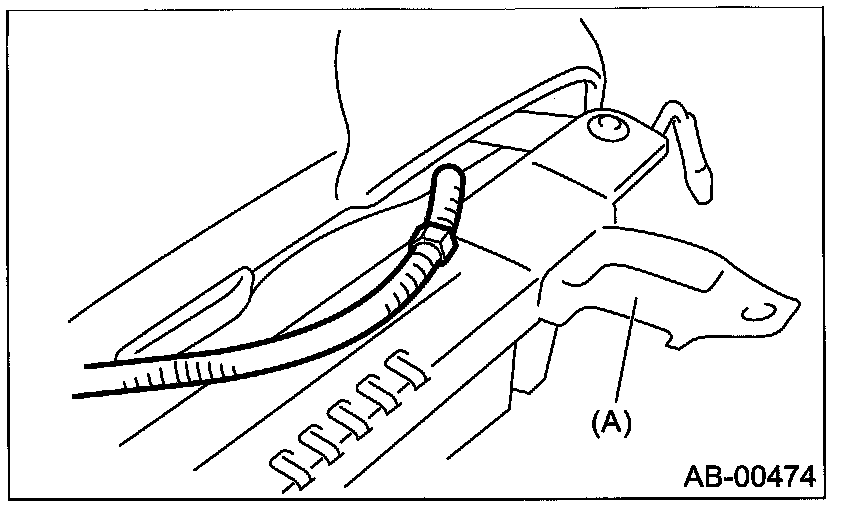 Install the side airbag harness to slide rail IN (A), and then secure the connector to the bracket the back side of seat cushion assembly.