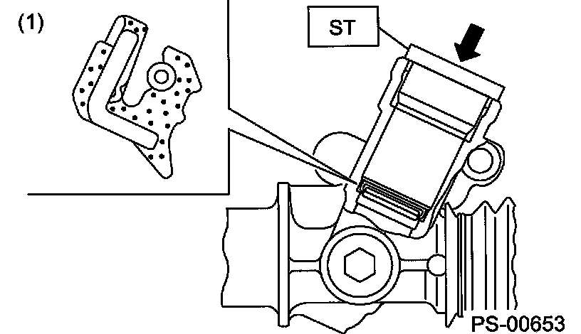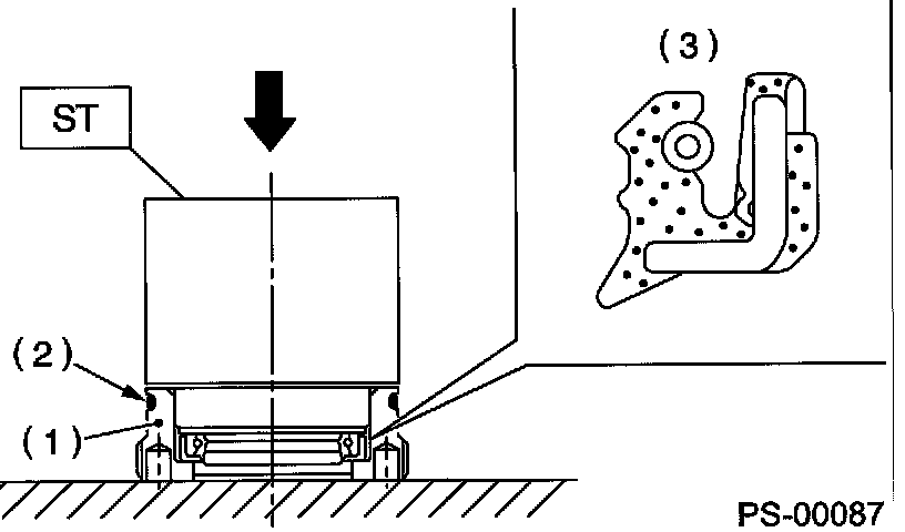 Apply grease on the oil seal circumference, and then press into the plug using ST and a press. Replace the plug circumference O-rings with new ones.