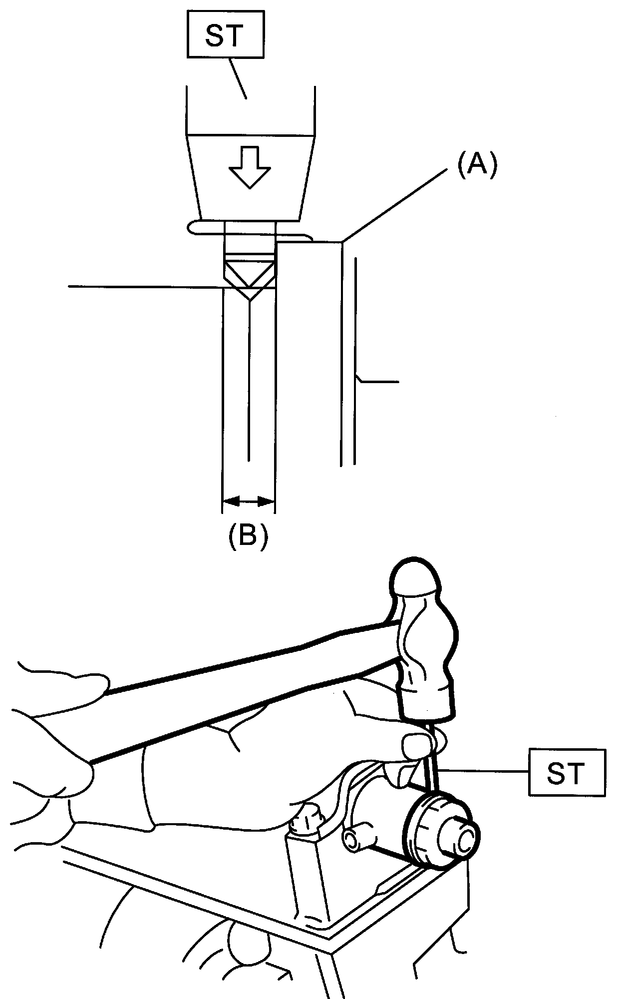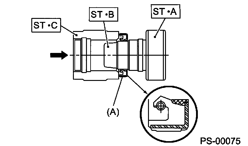 Using the ST-13 and ST-C, attach the oil seal to ST.A.