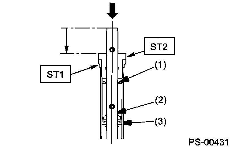 Make the ST2 pass through rack, and then push in the rack and ST2 using a press until ST1 comes in contact with ST2 and the end of rack is aligned with end of ST2.