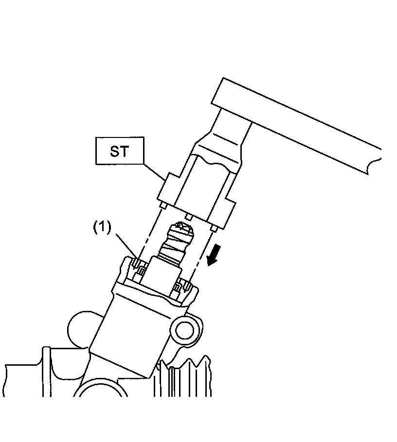 Verify the oil seal direction and installation position. Using the ST and press, press fit the oil seal to gear box.