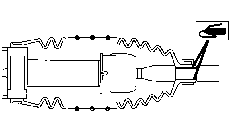 Caulk the boot so the space inside boot band caulking portion becomes 2 mm (0.08 inch) or less.