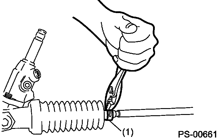Using a wrench (32 mm (1.26 inch) width across flats) or adjustable wrench with cinching boot, remove the tie-rod.