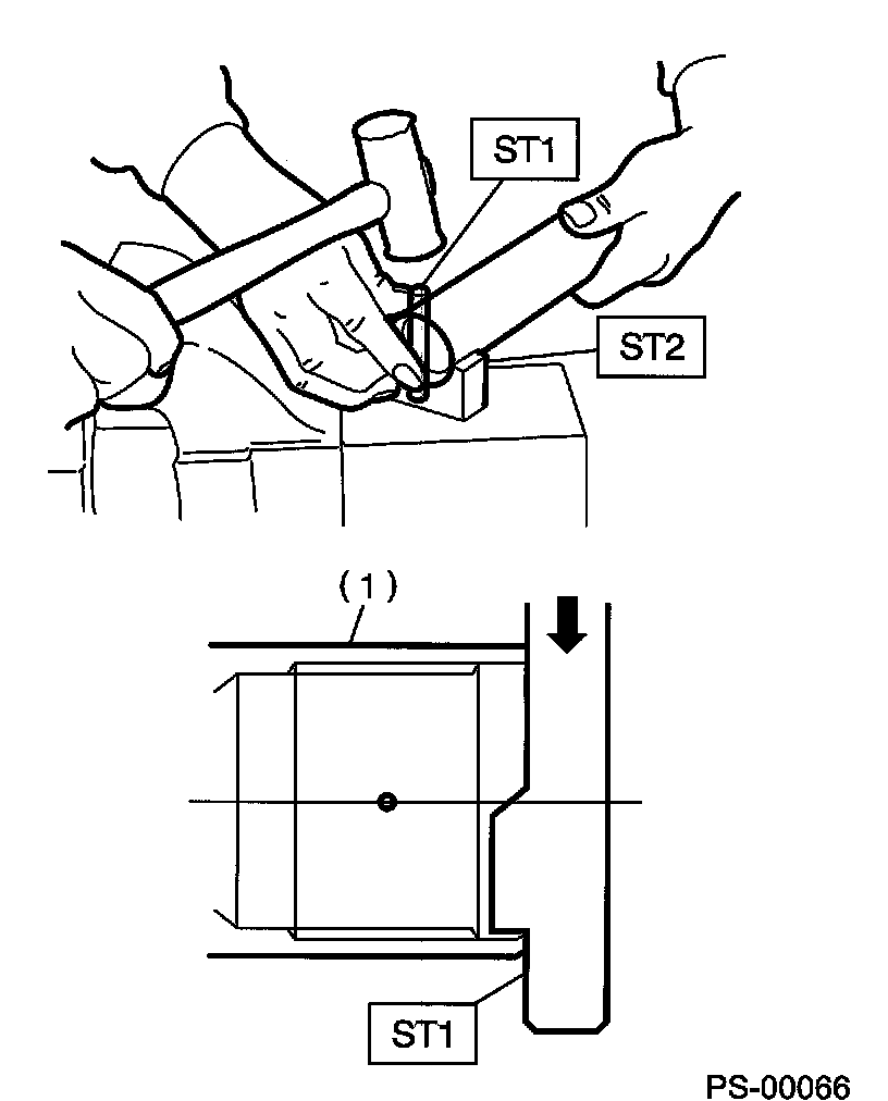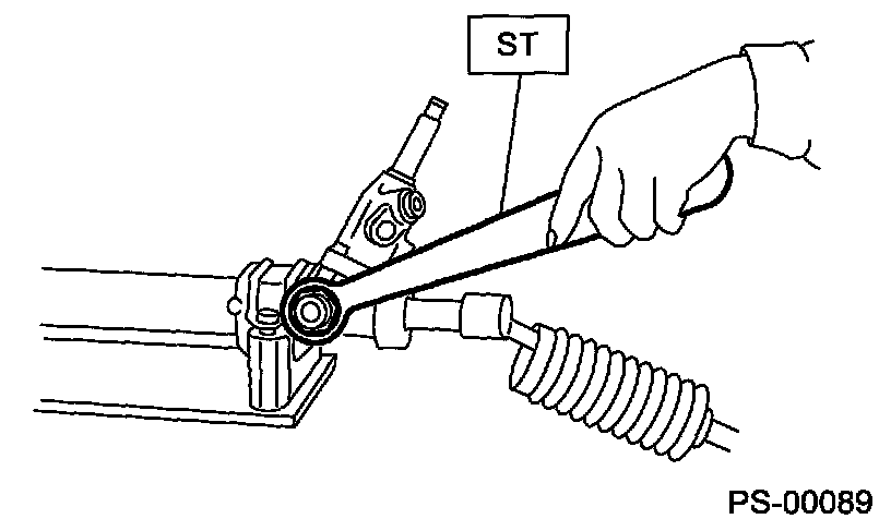Install the ST on valve side of rack and press outer side oil seal out taking care not to contact rack with steering body inner surface.