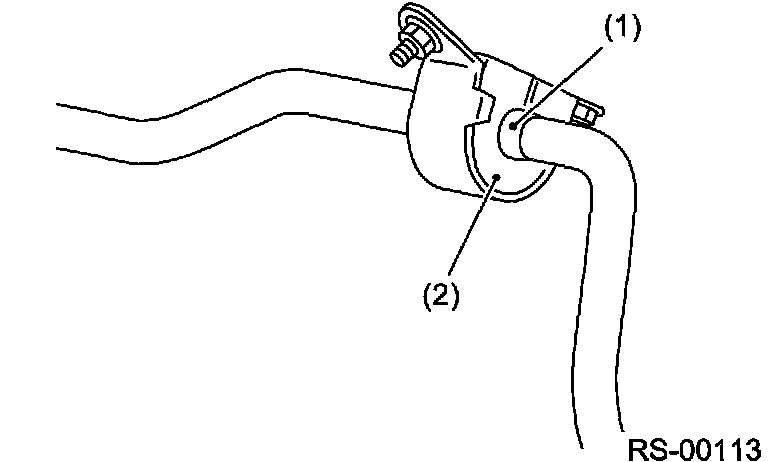 ^ Install the bushing (on front crossmember side) while aligning it with paint mark on stabilizer.