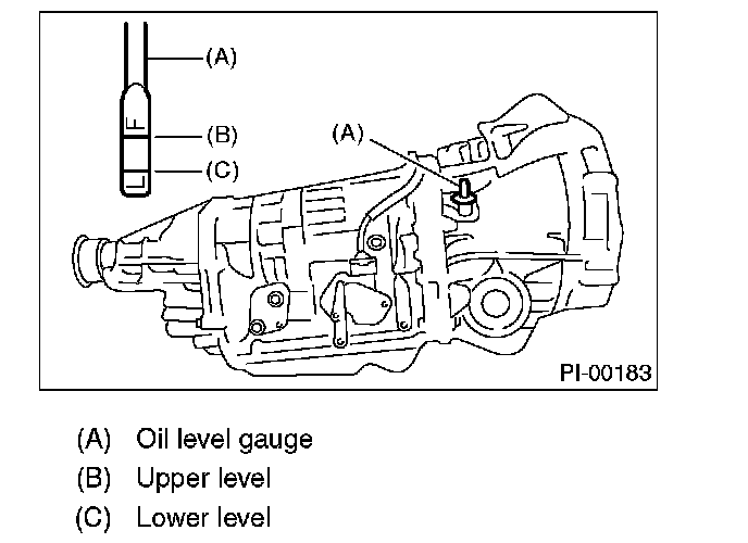 4. Remove it again and check the level. If the differential gear oil level is below the "L" line, add oil to bring the level up to the "F" line.