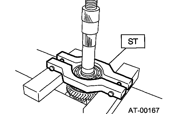 Note: Insert the center differential assembly and shim(s) completely into the bearing shoulder bottom.