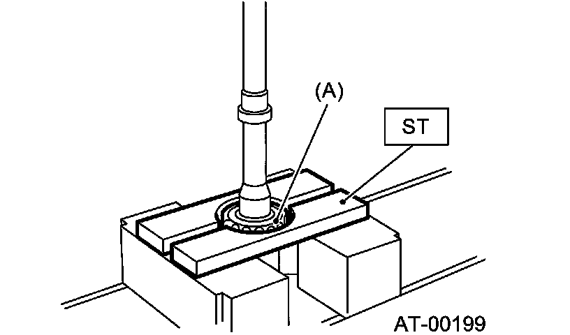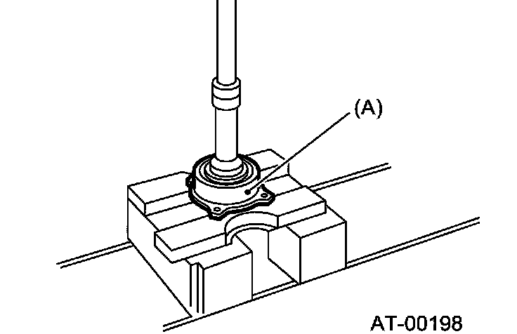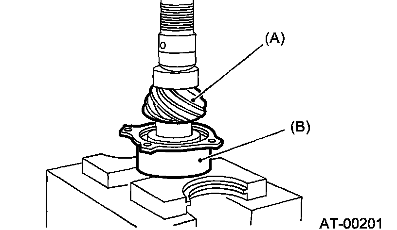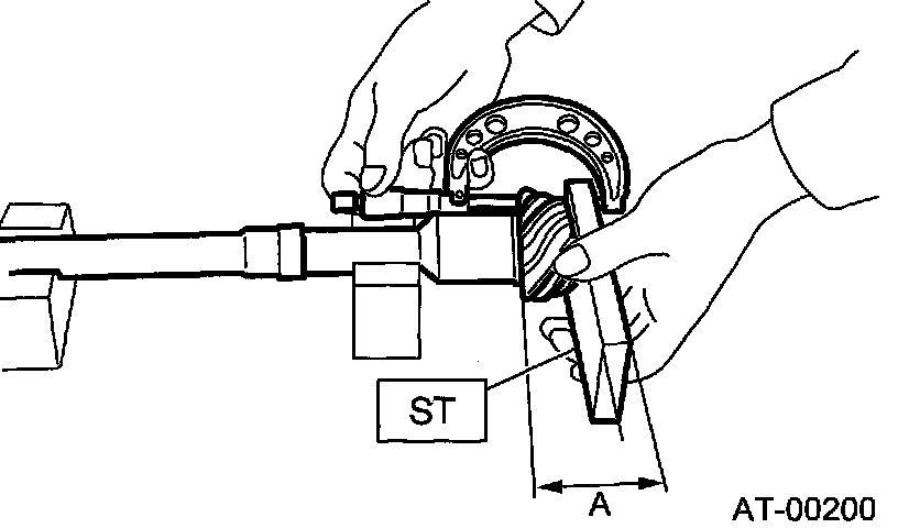 ^ If tooth contact is correct, mark the retainer position and loosen it. After fitting a new O-ring and oil seal, screw in the retainer to the marked position. Then tighten the lock plate to the specified torque.