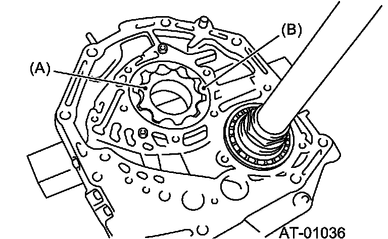 Using ST, measure the distance from the oil pump housing mating surface to the top surface of the oil pump cover with thrust needle bearing.