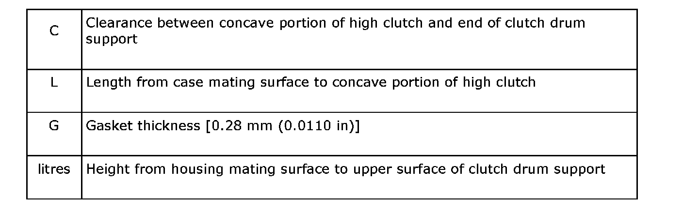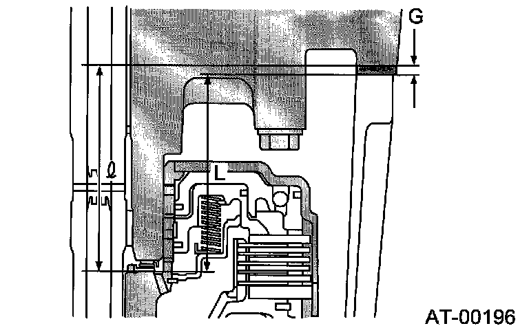 Using ST, measure the distance from the transmission case mating surface to the recessed portion of the high clutch drum L.