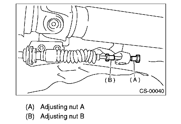 7. While preventing the adjusting nut B from moving with a wrench, tighten the adjusting nut A.