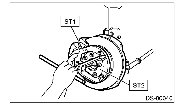 6. Remove the front drive shaft assembly. If it is hard to remove, use the ST1 and ST2.