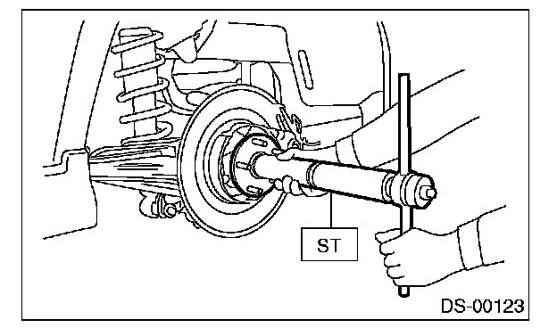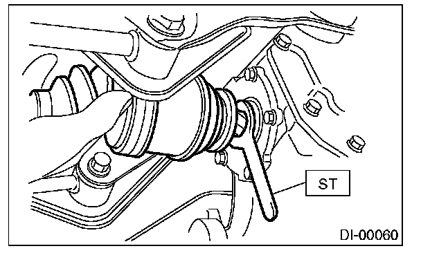 8. Using the ST1 and ST2, pull the rear drive shaft into place.