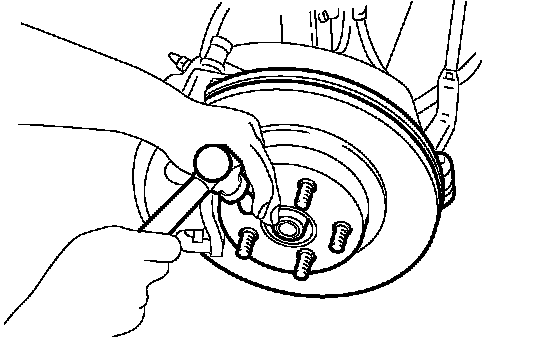 9. Tighten a new axle nut to the specified torque with parking brake applied.