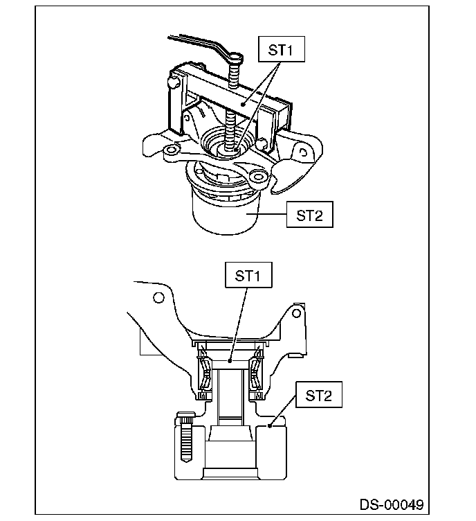 7. Using the ST2, hold the inner race to drive out the outer race of bearing.