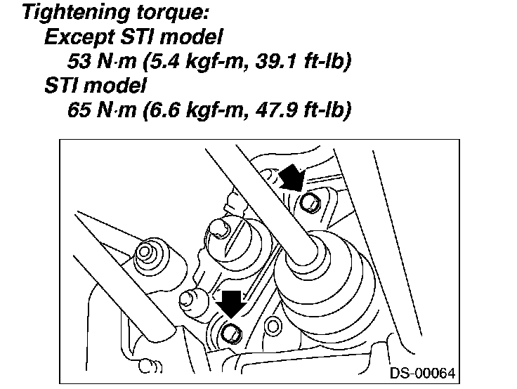 Make the tires contact the ground fully and the vehicle be in curb weight whenever carrying out the tightening of bushing portions.