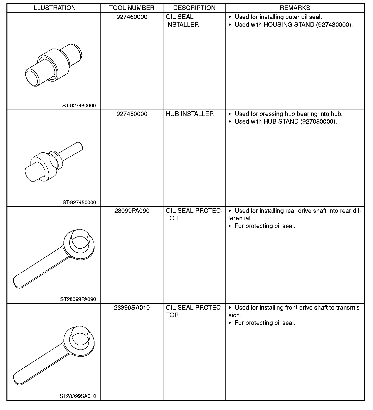 Drive Axles, Bearings and Joints: Tools and Equipment
