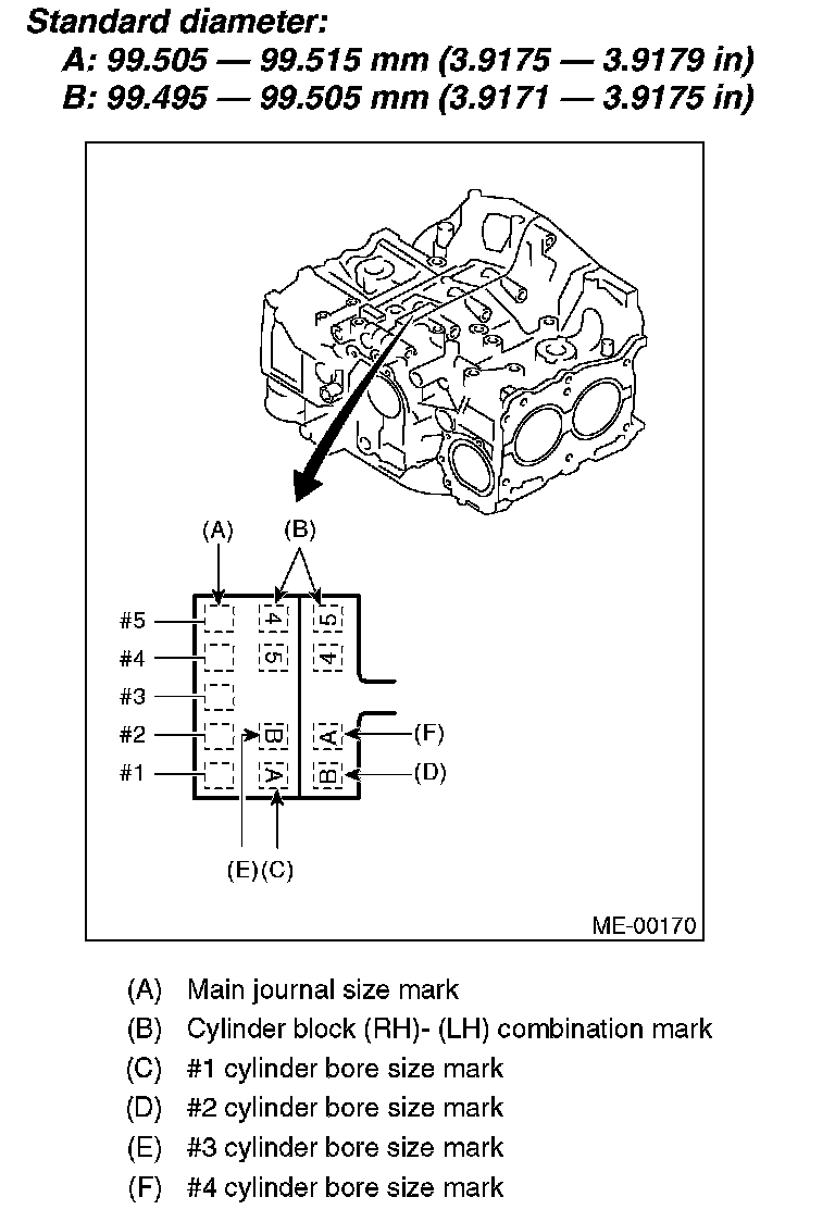 0.50 mm (0.0197 inch) oversize: 99-995 - 100.015 mm (3.9368 - 3.9376 inch)