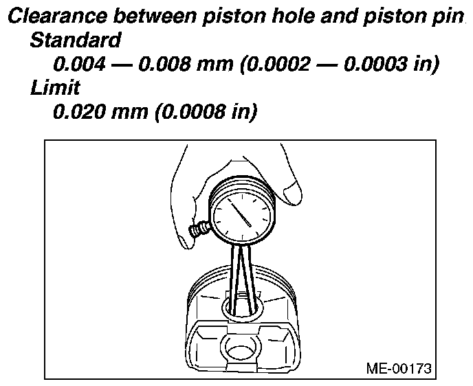 3. Make sure that the piston pin can be inserted into the piston pin hole with a thumb at 200C (680F). Replace if defective.