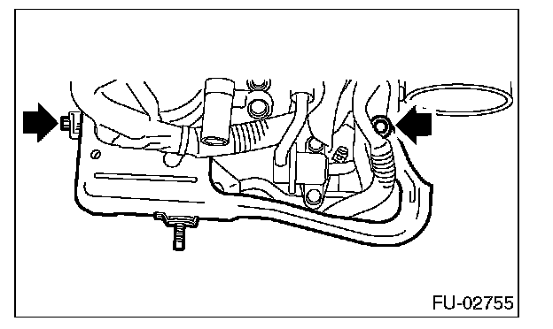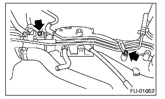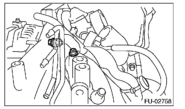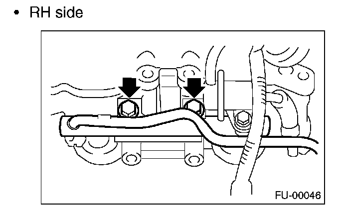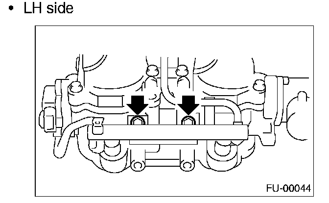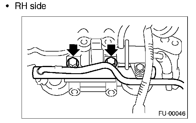 12. Remove the two bolts which hold the fuel pipes on the left side of intake manifold.