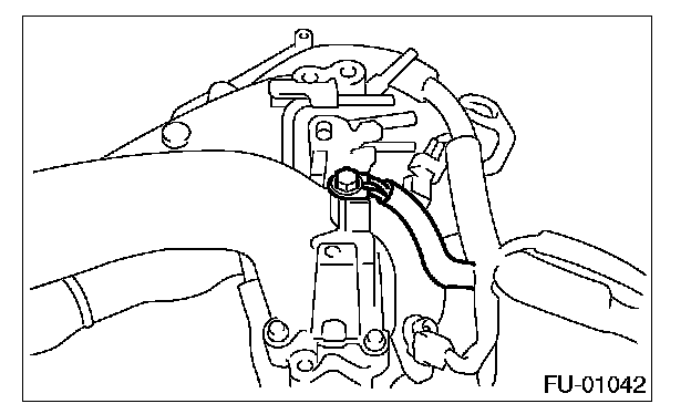 17. Loosen the clamp which holds the front left side fuel hose to fuel injector pipe and remove the pipe from clamp.