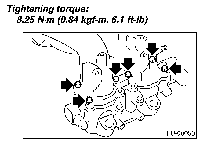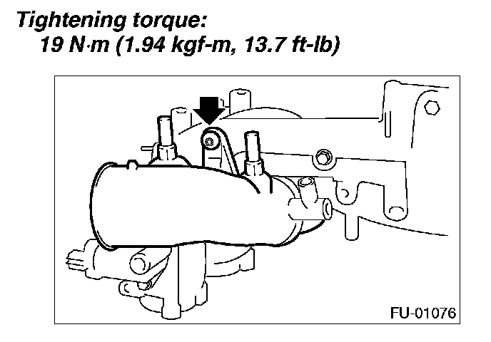 11. Tighten the bolts which install the fuel injector pipe onto intake manifold.